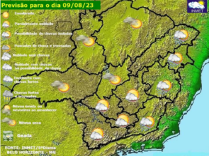 Essa quarta-feira apresenta melhora nos índices de umidade em Minas Gerais. Uma massa de ar frio sobre o oceano, nas imediações do litoral Sul do país, leva ao aumento da