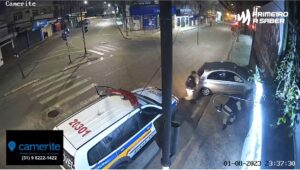 Carro invade calçada e quase atropela pedestres em Viçosa