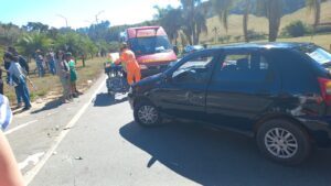 Colisão entre carro e moto no trevo de Coimbra e Ervália