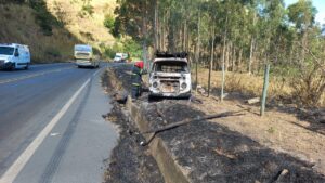 Bombeiros de Viçosa combatem incêndio em veículo na Serra de São Geraldo