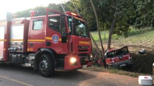 Homem fica ferido ao colidir carro em árvore em Canaã