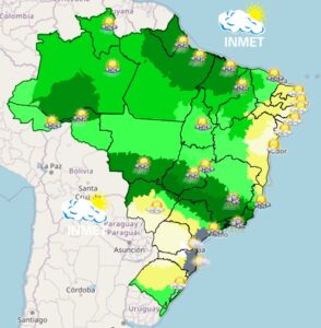 Viçosa tem previsão de céu nublado e possibilidade de chuvas isoladas nesta quarta-feira. As temperaturas máximas não passam dos 28ºC A quarta-feira (19/4) será nublada e chuvosa no Centro-Sul e