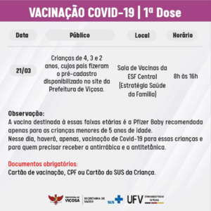 A vacinação é para as crianças cujos pais fizeram o pré-cadastro no site da Prefeitura, mas a PMV soltará um novo cadastro quando receber mais doses. As crianças de 4,