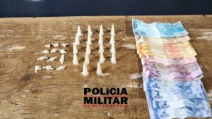 Durante patrulhamento, os militares flagraram o suspeito entregando algo a um terceiro indivíduo, ao revista-lo encontrou as drogas. Um homem de 28 anos foi preso pela Polícia Militar na tarde