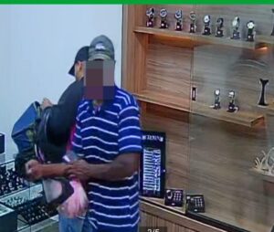 O crime aconteceu por volta de 12h desta segunda-feira, 13/2, e a polícia continua no rastreio para encontrar os autores do crime. Uma joalheria foi assaltada por dois homens na