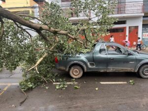 Galho de árvore cai sobre automóvel no Cantinho do Céu em Viçosa