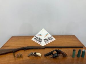 Na última quinta-feira 1/2, a Polícia Militar de Jequeri apreendeu armas e munições no Distrito de São Vicente do Grama, na Zona Rural. Após denúncia envolvendo a posse e comércio
