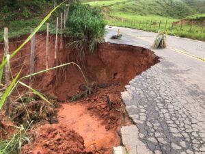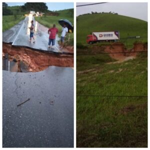 Além da MGC-265, em Mercês outras rodovias de Minas estão total ou parcialmente interditadas; Veja aqui as situações de outras rodovias mineiras. Uma cratera se abriu e “dividiu” a MGC-265,
