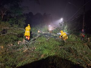 Bombeiros Militares cortaram árvores e desobstruíram vias em Viçosa devido às fortes chuvas de ontem, 24/1. Devido às fortes chuvas desta terça-feira, 24/1, o Corpo de Bombeiros Militar (CBMMG) foram