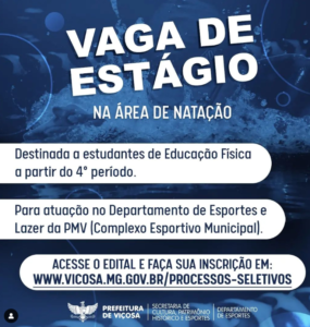 A atuação é na área de natação; podem se inscrever estudantes a partir 4º período e as inscrições vão até esta sexta-feira, 27/1. O Departamento de Esportes e Lazer da