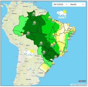 Nesta terça-feira, áreas de instabilidade atmosféricas se intensificam em parte da Região Sudeste do Brasil e dessa forma há previsão de pancadas de chuva, por vezes fortes, sobretudo no Oeste