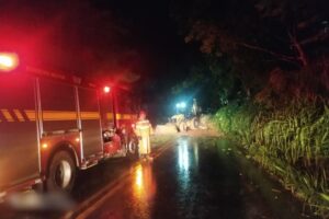 Além da grande quantidade de terra, diversas árvores foram arrastadas para a pista, bloqueando o tráfego nos dois sentidos. Um deslizamento de encosta provocado pelas chuvas interditou totalmente a BR-356,