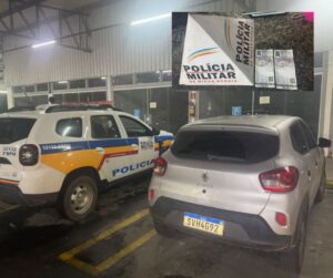 O rastreamento levou os policiais até um Renault Kwid prata no estacionamento do supermercado Bahamas Mix, no bairro Grama, em Juiz de Fora. A Polícia Militar prendeu dois homens suspeitos
