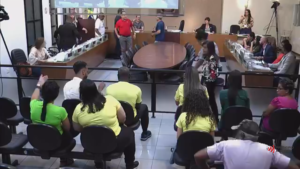 A reunião precisou ser interrompida por 30 minutos por causa da água das chuvas que estavam entrando no plenário da Câmara. Um fato inusitado interrompeu a reunião da Câmara de