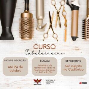A Prefeitura de Viçosa, através do Setor de Inclusão Produtiva da Secretaria de Assistência Social, está oferecendo um curso de capacitação gratuito para cabeleireiro para pessoas cadastradas no CadÚnico. Serão