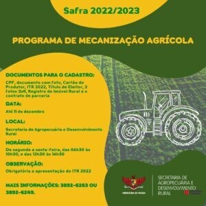 Inscrições para o Programa de Mecanização Agrícola, Safra 2022/2023, em Viçosa