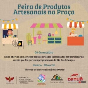 A Secretaria Municipal de Desenvolvimento Econômico, Ciência e Tecnologia, através do Departamento de Turismo, vai promover, no próximo sábado (08) das 9 às 13 horas, uma feira de produtos artesanais.