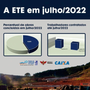 O Serviço Autônomo de Água e Esgoto (SAAE) de Viçosa divulgou, nesta segunda-feira (15), dados de como está o andamento das obras da ETE Barrinha. Segundo o levantamento de julho,