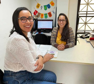 A chefe do Departamento de Indústria e Comércio da Secretaria Municipal de Desenvolvimento Econômico, Ciência e Tecnologia, Daniele Soares Guimaraes Cardoso, e a vereadora, Jamille Mylena de Freitas, conselheiras municipais