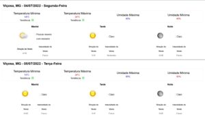 Previsão do tempo para Viçosa nesta segunda-feira (4/6)