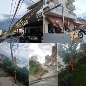 Em pontos isolados, houve relatos de queda de granizo, fenômeno também registrado em cidades vizinhas. Na tarde desta terça-feira, 17 de dezembro, fortes chuvas acompanhadas de rajadas de vento causaram