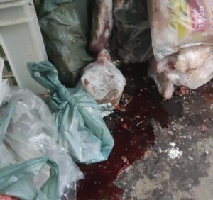 Durante a vistoria no supermercado pertencente ao mesmo proprietário, foram localizadas carnes armazenadas em condições insalubres, sem comprovação de origem. Na manhã da última sexta-feira, 13 de dezembro, a Polícia