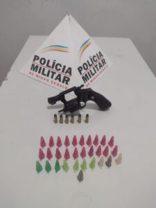 PM apreende um revólver e 31 pinos de cocaína em Visconde do Rio Branco