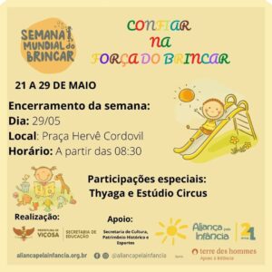 Acontece em Viçosa, no período de 23 a 29 de maio, como parte do calendário oficial de eventos do município, a Semana Mundial do Brincar, que neste ano tem como