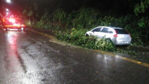 A queda de uma árvore derrubou fios de eletricidade sobre um carro na noite desta segunda-feira (16) na Avenida Marechal Humberto Castello Branco, centro de Viçosa, e interditou o trânsito
