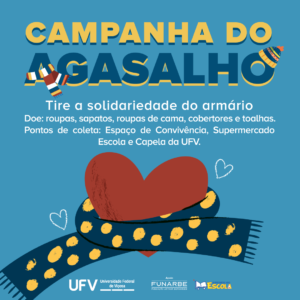 A Universidade iniciou, nesta segunda-feira (16), uma Campanha do Agasalho com o objetivo de arrecadar roupas de frio para estudantes e famílias em vulnerabilidade socioeconômica de Viçosa. As doações de