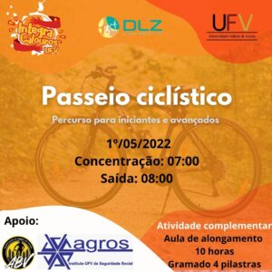 A Divisão de Esportes e Lazer da UFV realizará um passeio ciclístico em comemoração ao dia do trabalhador (1º de Maio), que terá concentração dos ciclistas às 08 horas nas