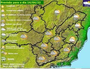 Previsão do tempo para Minas Gerais nesta sexta-feira, 15 de abril