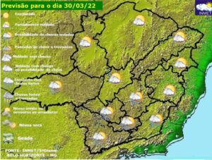 Previsão do tempo para Minas Gerais nesta quarta-feira, 30 de março