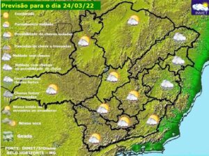 Previsão do tempo para Minas Gerais nesta quinta-feira, 24 de março