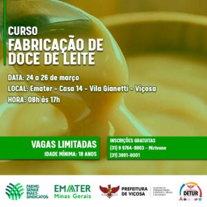 Viçosa: curso de fabricação de doce de leite será realizado na cidade de forma gratuita