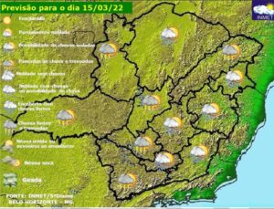 Previsão do tempo para Minas Gerais nesta terça-feira, 15 de março