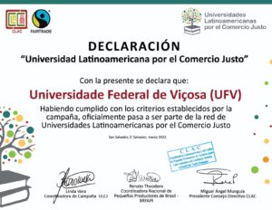 Reconhecida por seu trabalho em diversas áreas, a UFV agora faz parte também da Rede de Universidades Latino-americanas pelo Comércio Justo. A certificação foi concedida nesta quarta-feira (09), em live transmitida pelo Youtube