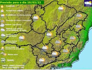 Previsão do tempo para Minas Gerais nesta quinta-feira, 10 de março