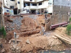 O Serviço Autônomo de Água e Esgoto de Viçosa (SAAE) está realizando a recuperação de um trecho de um interceptor na parte de trás da rua José Braz da Costa
