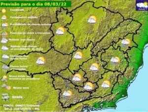 Previsão do tempo para Minas Gerais nesta terça-feira, 8 de março