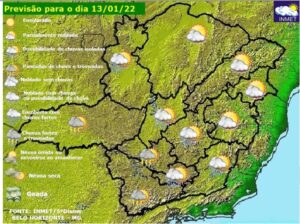 Previsão do tempo para Minas Gerais nesta quinta-feira, 13 de janeiro