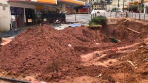 SAAE está trabalhando para retirar entulhos em receptor de esgoto atrás do Posto Tiger