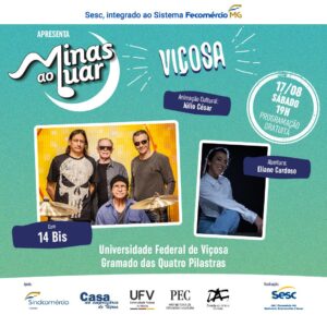Minas ao Luar: 14 Bis e Eliane Cardoso em show gratuito em Viçosa