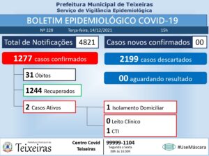 O Boletim epidemiológico divulgado pela prefeitura de Teixeiras na tarde desta terça-feira (14) veio com a informação de que o município registrou a 31ª morte por coronavírus. A vítima, um