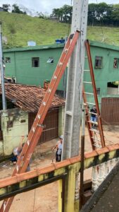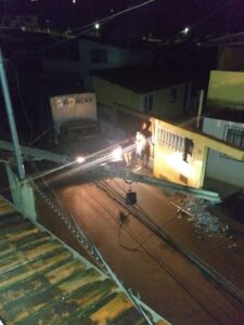 Após um caminhão derrubar um poste de iluminação pública e causar falta de energia elétrica, na rua Lino Lopes Rosado, na Violeira, em Viçosa, a situação foi normalizada por volta