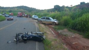 O condutor de uma motocicleta ficou ferido em um acidente entre a motocicleta que ele conduzia e um automóvel. De acordo com informações do Corpo de Bombeiros de Viçosa, o