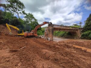 A Defesa Civil de Viçosa iniciou na manhã desta terça-feira (16) a demolição da estrutura da antiga ponte de Silvestre para começar a construção da nova ponte que vai ligar