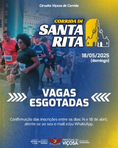 Evento esportivo atrai grande número de participantes e destaca popularidade das corridas de rua na região. As inscrições para a Corrida de Santa Rita, evento promovido pela Prefeitura de Viçosa,