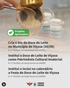 Projetos de Lei da vereadora Vanja Honorina avançam reconhecimento do doce e incluem festa no calendário da cidade. A Câmara Municipal de Viçosa aprovou, em definitivo, três projetos de lei