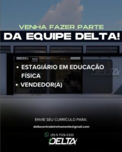 Delta Centro de Treinamento abre vagas de emprego para estagiário em educação física e vendedor(a) em Teixeiras A Delta Centro de Treinamento, com atuação na cidade de Teixeiras, anunciou a